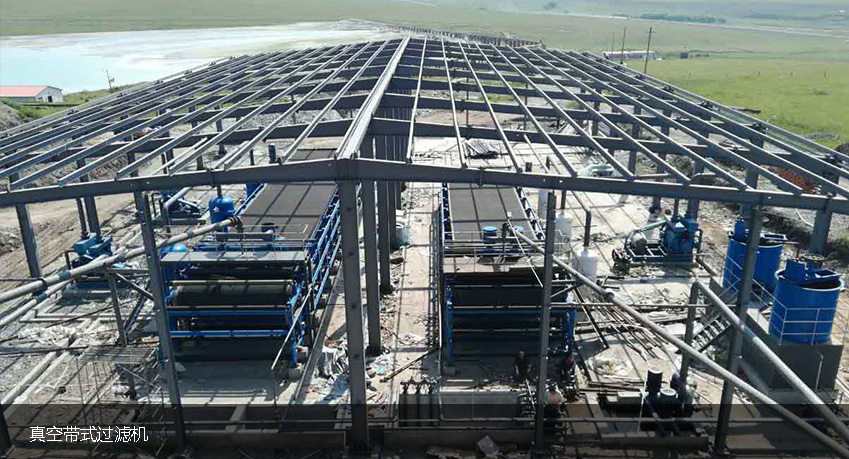 帶式真空過濾機是在引進國外同類產品技術基礎上,自主開發的一種過濾固液分離設備。該設備采用了固定真空盒,膠帶在真空盒上滑動,真空盒與膠帶間構成運動密封的結構型式,以真空負壓為推動力實現固液分離的設備